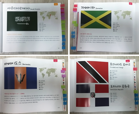 마지막에 포함된 국기 스티커는 어린 아이들에게 언제나 인기가 많습니다. 책도 다 보기 전에 붙이려고 달려 들지요. 저는 다 읽을 때까지 손 못되게 설득하느라 전전긍긍 하기도 했습니다.