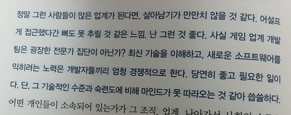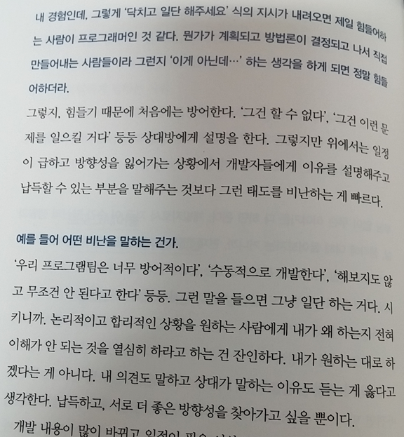 뭐든 읽고 내 것으로 소화할 수 있으면 다 도움이 되는 이야기겠지만 '나는 나고, 우리는 우리다'라고 생각한다. 참조할 부분만 참조하고 배울 부분만 배우자.