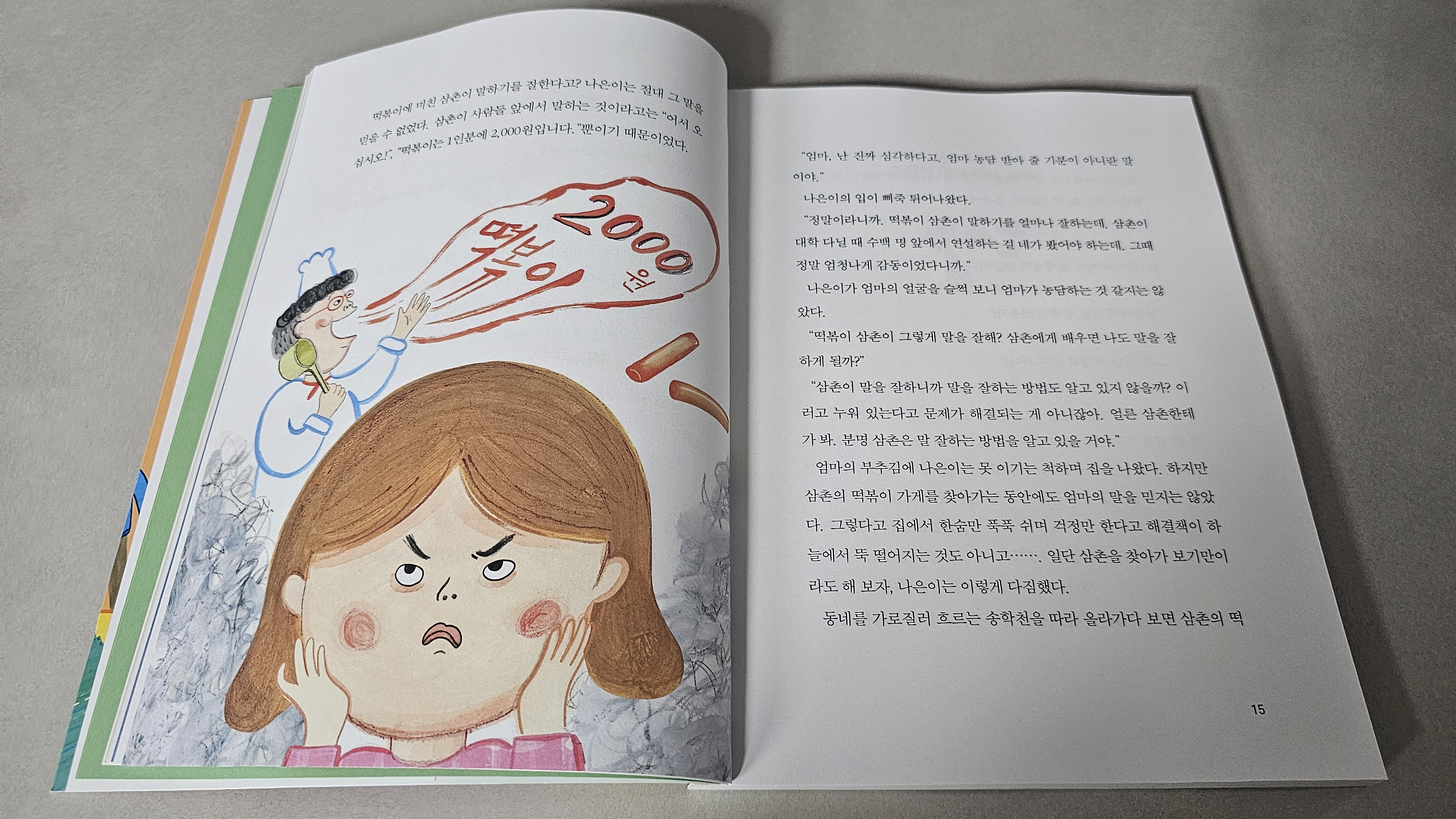 어떻게든 발표만은 피하고 싶었지만 결국 모둠 발표를 맡게 된 나은이는 엄마로부터 떡볶이 가게를 운영하는 떡볶이 삼촌이 숨은 말하기 고수라는 의외의 이야기를 듣게 되고 삼촌에게 도움을 얻기 위해 가게를 찾아갑니다. 책에는 떡볶이 삼촌과 함께 말하기를 위한 준비에서 말하기 자신감을 키우는 방법까지 말하기의 기본 지식을 하나하나 배우며, 모둠 발표를 차근차근 준비해 나가는 나은이의 여정이 흥미롭게 펼쳐집니다.