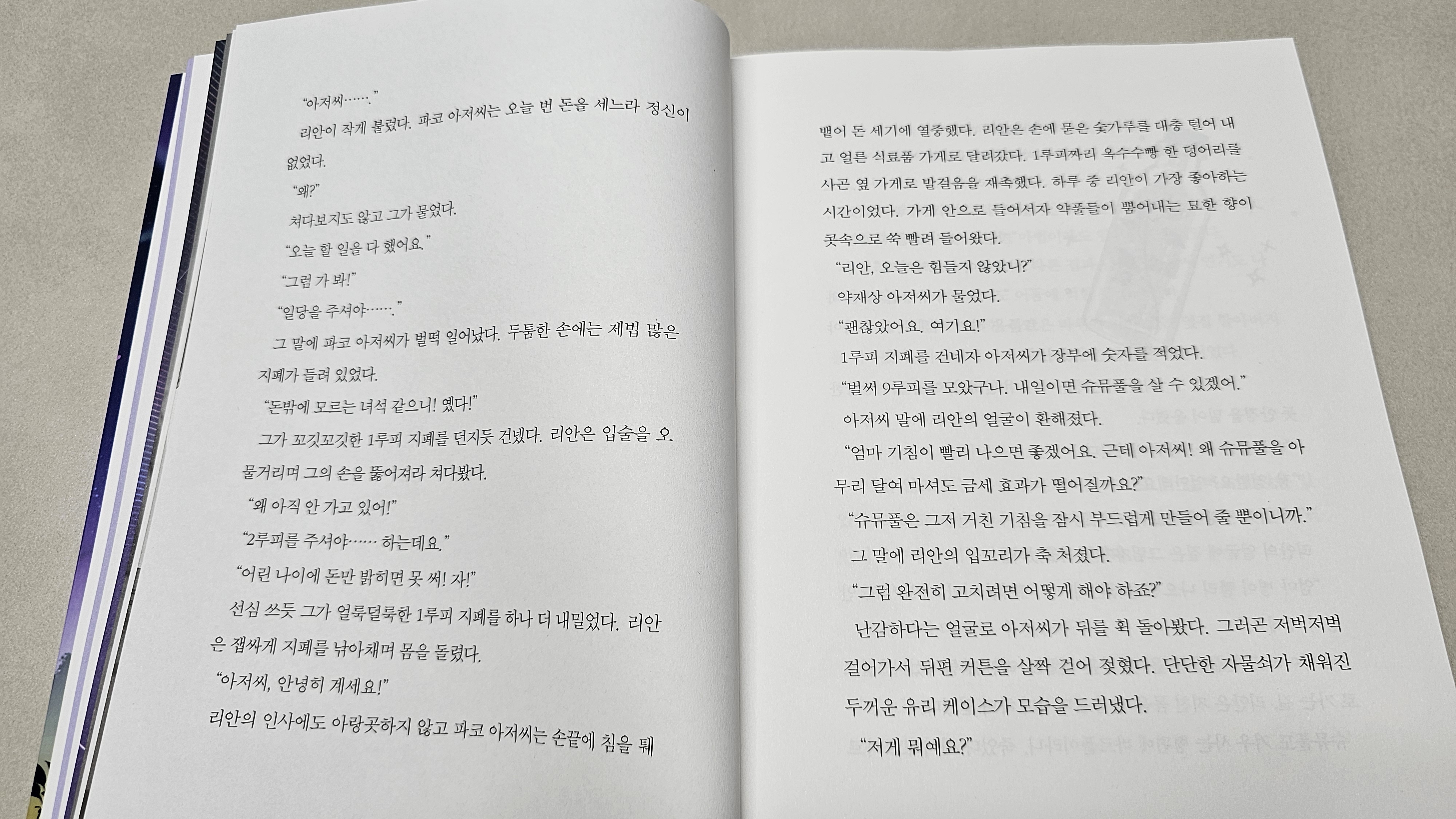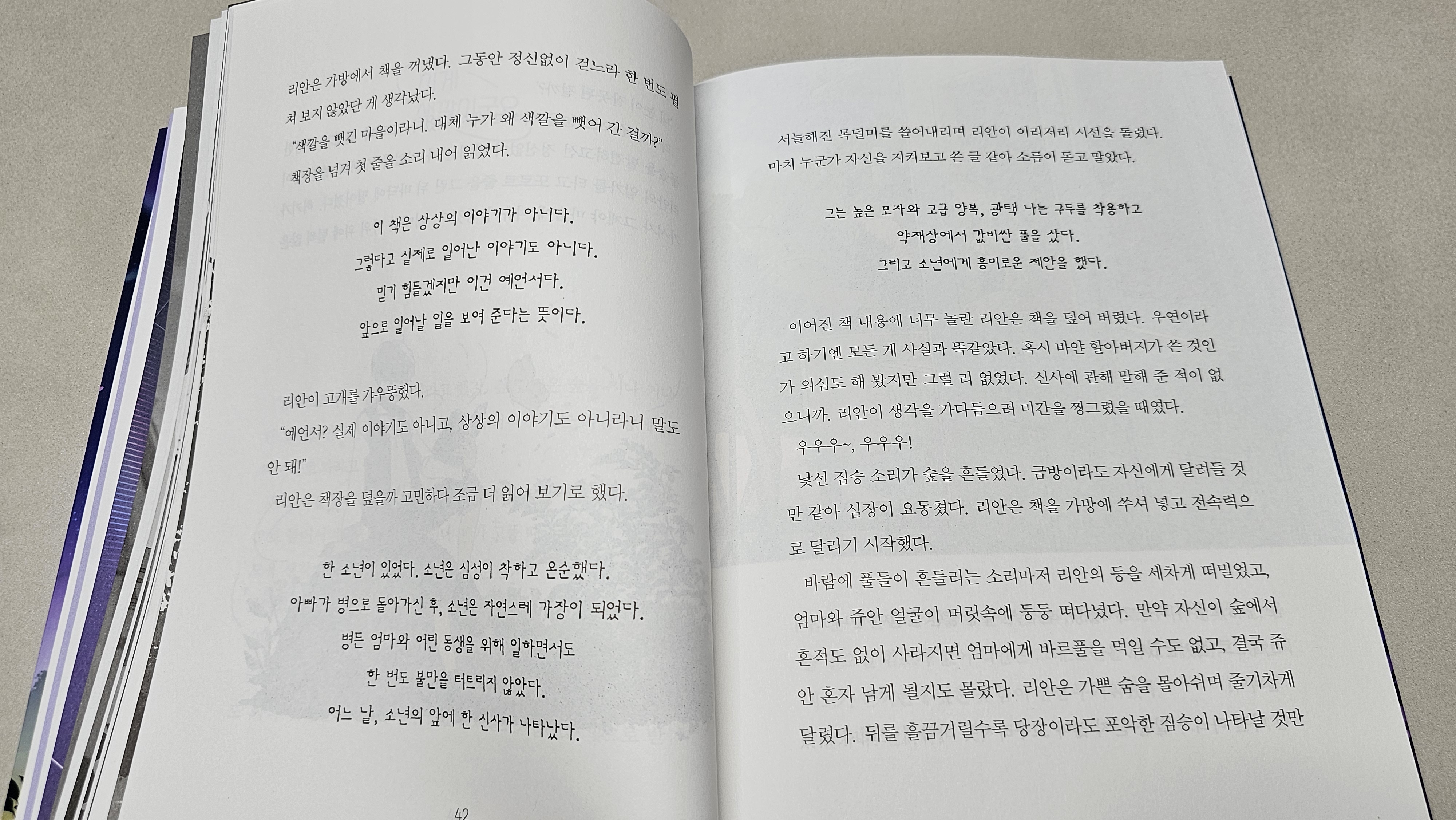 특히 환상적이고 몽환적인 이 세상 모든 빛깔들을 감각적으로 표현해 주신 덕분에 독자들은 마치 책 속으로 빨려들 듯한 몰입감을 느끼게 된답니다.