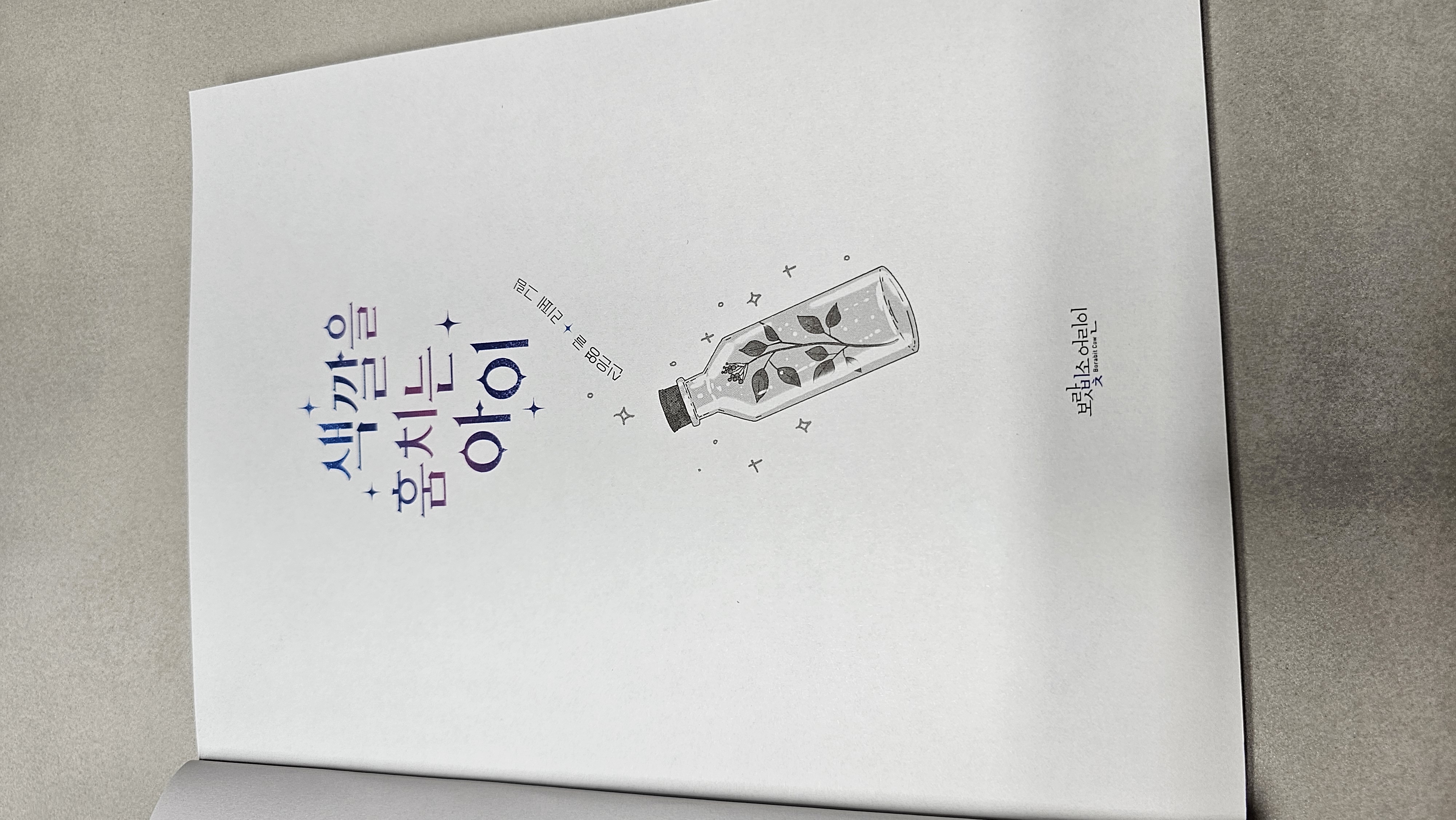 유리병 속에 담긴 다채로운 색깔만큼 다채로운 우리의 마음을 엿볼 수 있는 책, 《색깔을 훔치는 아이》를 통해 올바른 선택의 힘을 깨닫기를 바랍니다.
