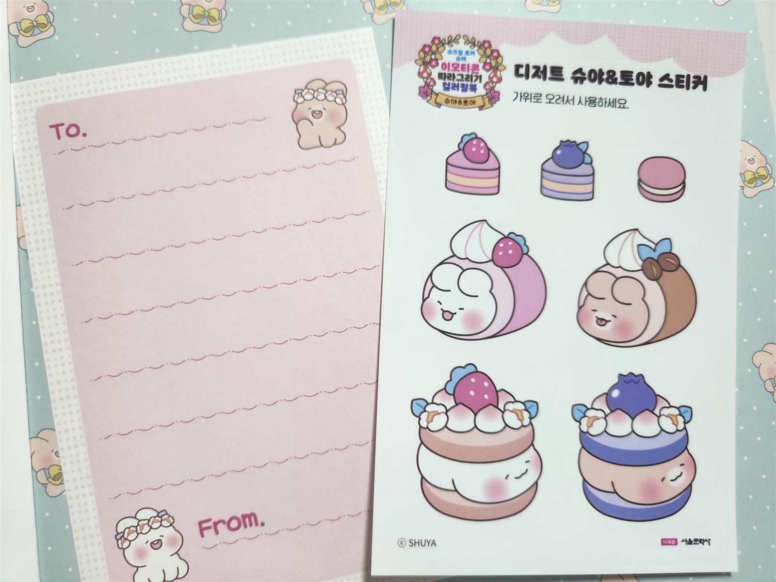슈야, 토야 이모티콘은 귀여워서 이모티콘 플러스를 사용하는 제가 애용하고 있는 캐릭터라 저부터 우선 반갑더라구요^^ 저희 큰 애도 귀여운걸 너무 좋아하는 아이이고 그림 그리는 걸 좋아하는 아이라 좋아할 것 같아 신청했는데 역시나 책을 받자마자 꺄아~ 소리를 지르내요^^ 책과 함께 온 엽서와 스티커도 너무 좋아하구요