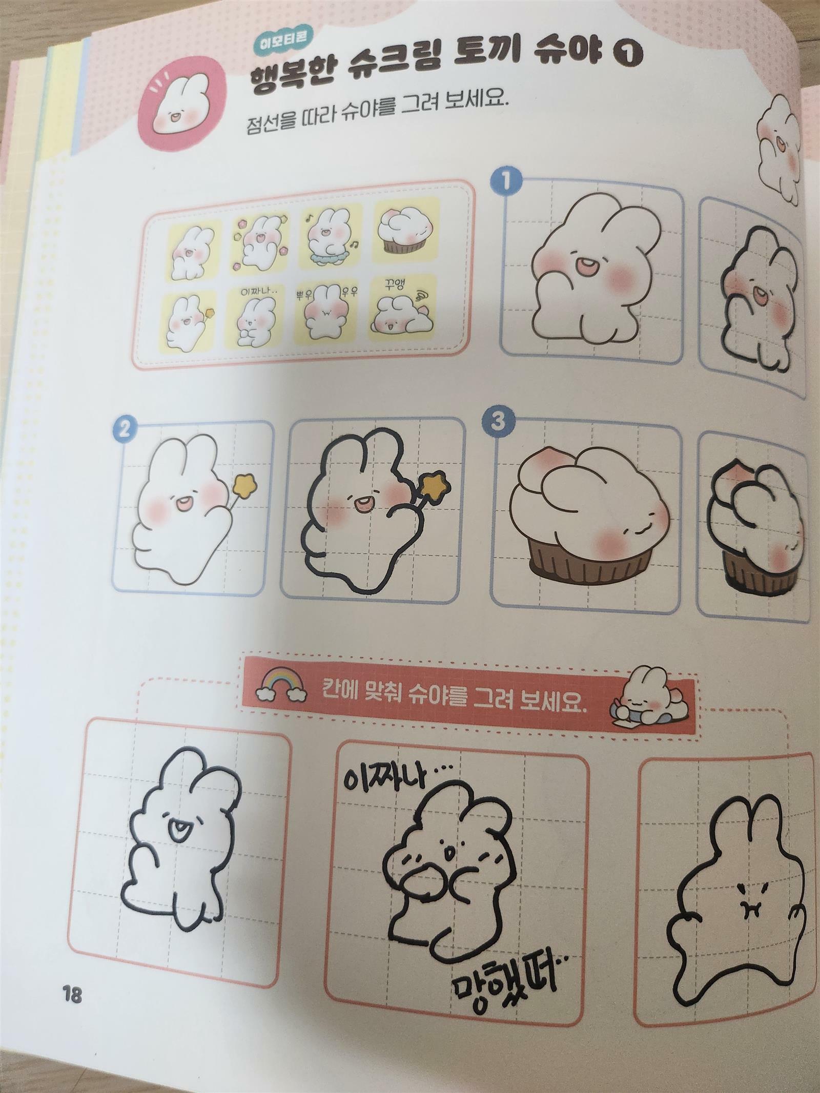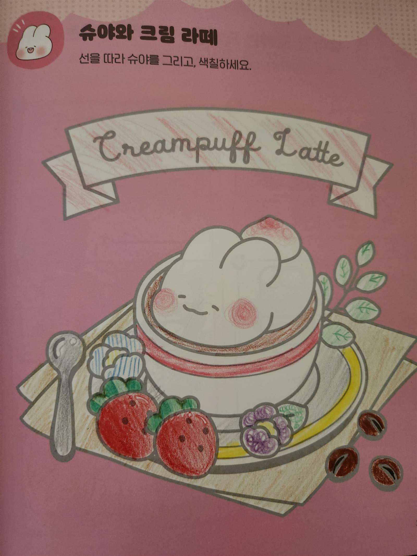 이 책은 카카오톡 이모티콘 1위인 '슈크림 토끼 슈야'를 주제로 한 따라그리기, 컬러링북입니다.