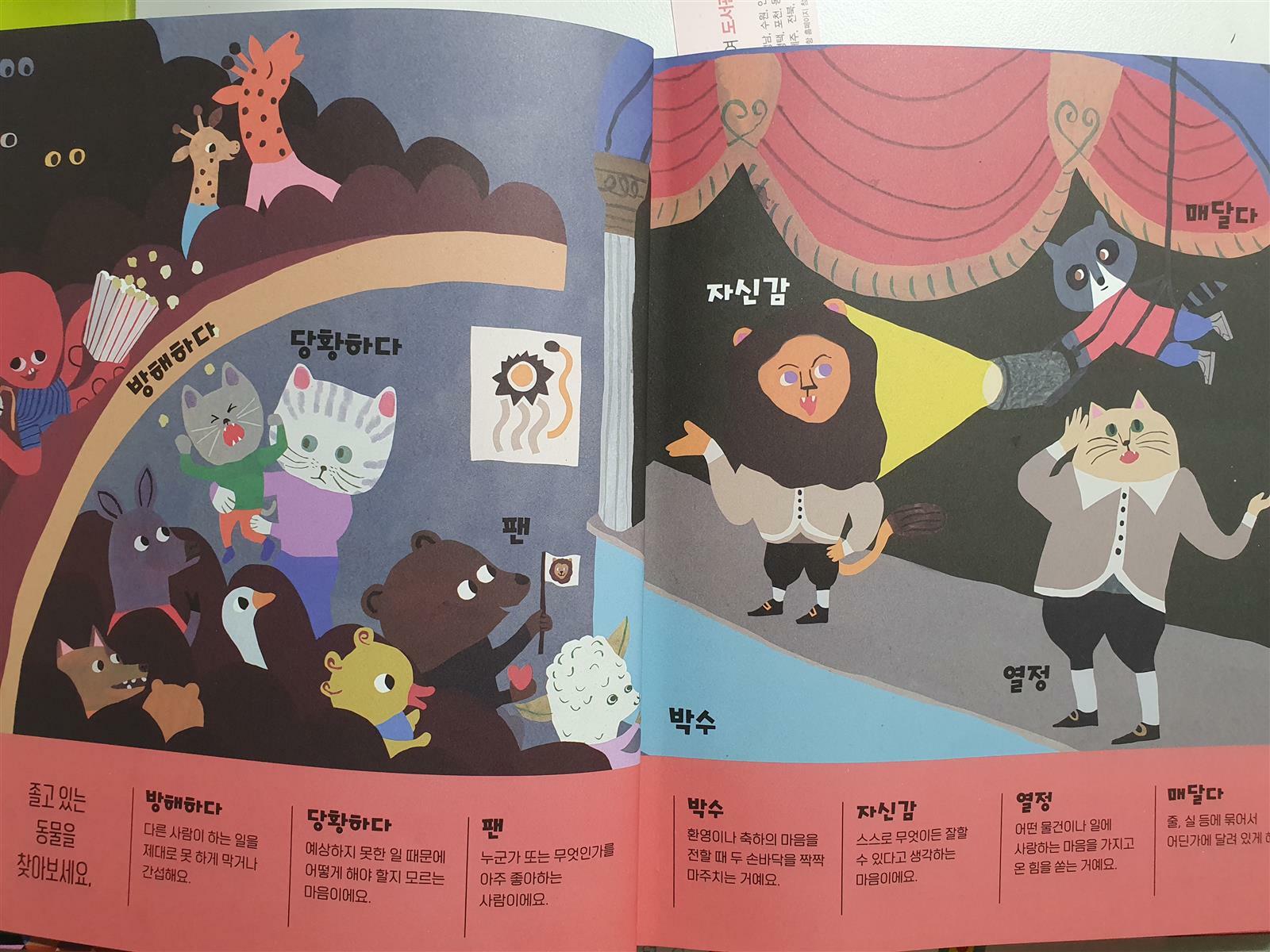 이 책은 하나의 장면을 통해 여러 어려운 단어들을 소개하면서 아이들이 자연스럽게 어려운 단어들을 습득 할 수 있게 만들어 놓은 책입니다.