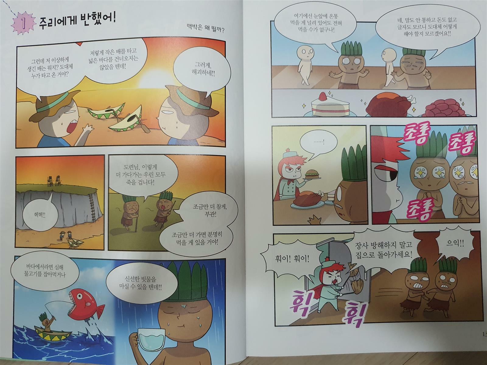 이 책은 100만부를 돌파한 학습만화의 베스트셀러 놓지마 과학 시리즈의 개정판인데요, 이번에 과학자 인물탐구와 과학상식퀴즈가 더 추가되어 나왔다고 하네요~ 제가 읽은 책은 그 중에서 7번째 시리즈로 정신이네 가족이 태평양에 있는 가상의 섬, 그레이트 랜드로 가는 모험여행을 통해 알게 되는 여러가지 과학적 현상과 상식등을 알려주는 책입니다.