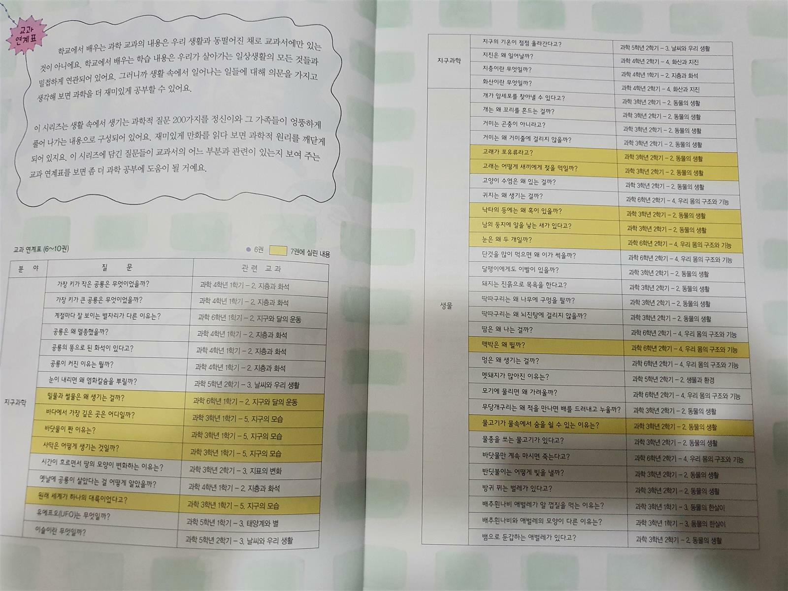 이렇게 앞장에 교과서와 연계된 내용들이 쭈욱 나열되어 있었는데 이런게 한 장 더 있더라구요 이걸 보면서 놓지마 과학 시리즈를 다 읽기만 해도 아이들 초등과학 공부에 많은 도움이 되겠다는 생각이 들었습니다.