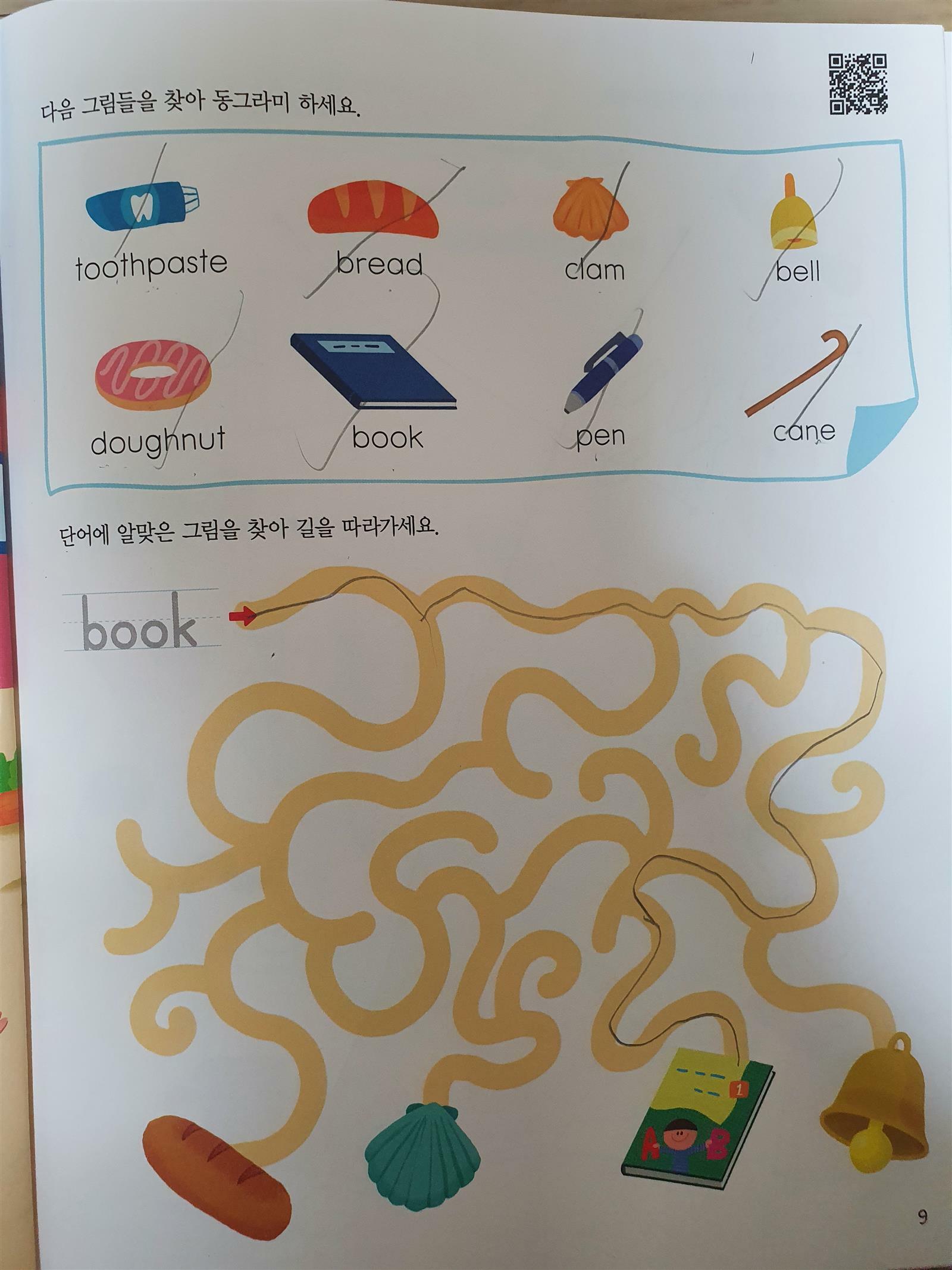 이 책은 역시나 알파벳하면 빠질 수 없는 알파벳송으로 시작합니다. 큐알코드를 찍으니 바로 음악과 음성이 나와서 좋더라구요 한번 불러볼까? 하고 같이 불렀는데 아이가 두번 더 부르고 싶다고 해서 두번 더 불렀네요^^