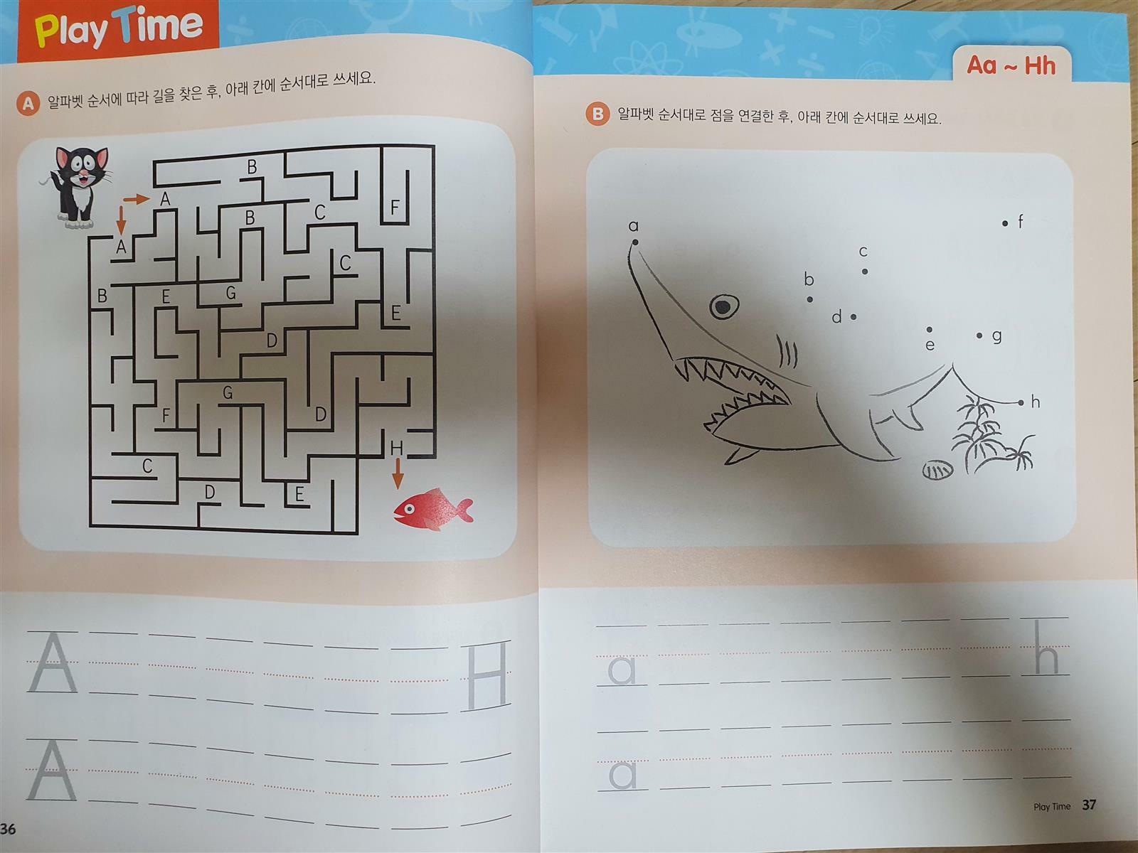그리고 중간 중간에 이렇게 놀이를 통해서 배운 알파벳들을 복습해보는 페이지도 있었습니다.