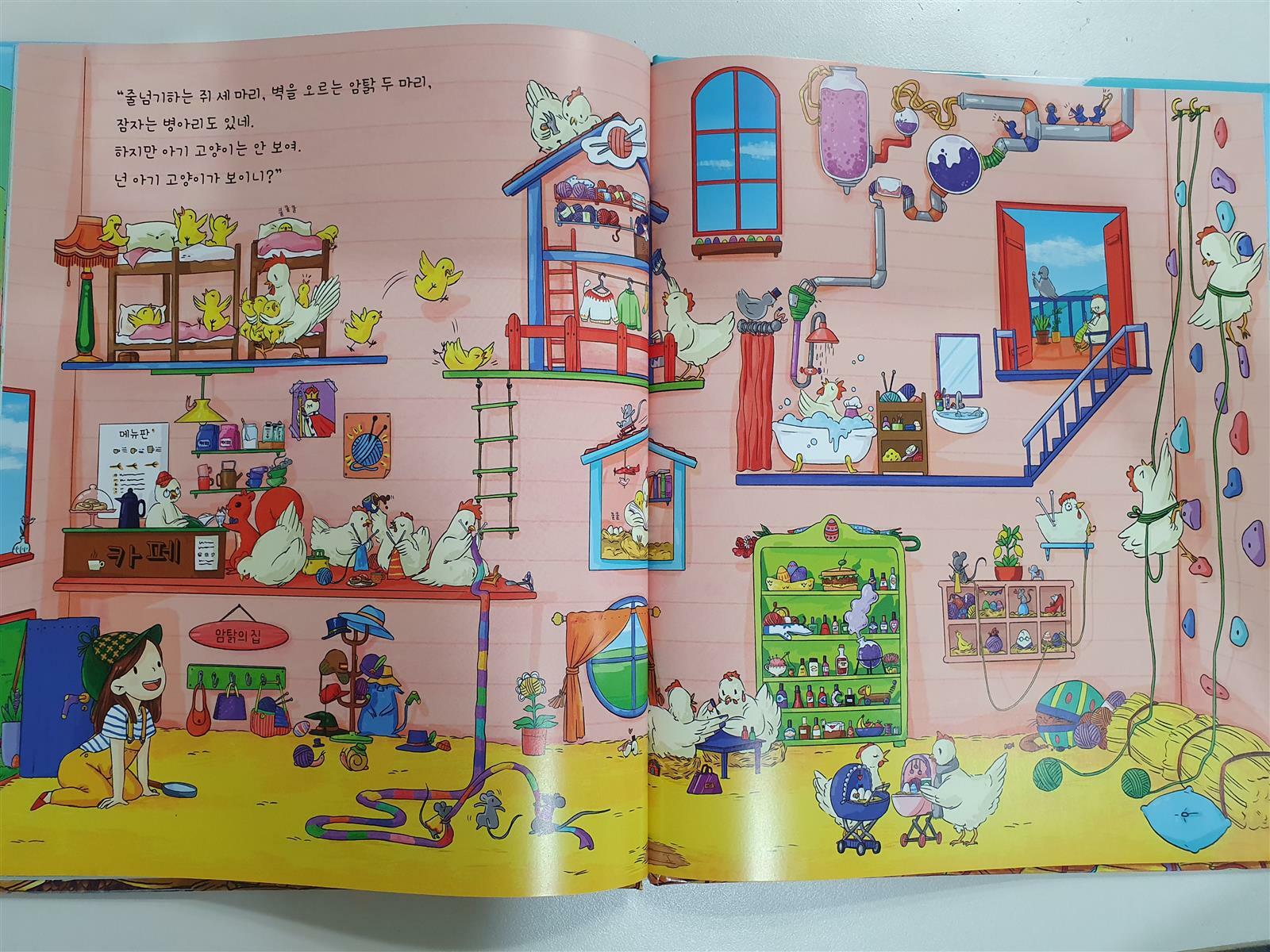 티나가 새끼고양이들을 찾으러 이곳 저곳을 다니는데요~ 다니는 곳마다 고양이 뿐 아니라 여러 동물이나 사물을 찾을 수있게 문제를 제시합니다 아이들이 서로 찾으려고 난리 난리 입니다 ㅎㅎㅎ 수준도 찾아라 대놓고 그려놓은 수준은 아니어서 저도 열심히 찾아보게 되더라구요^^
