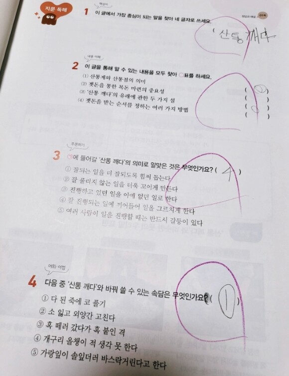 열심히 풀어보고 채점하며 시간을 보내고 있어요.