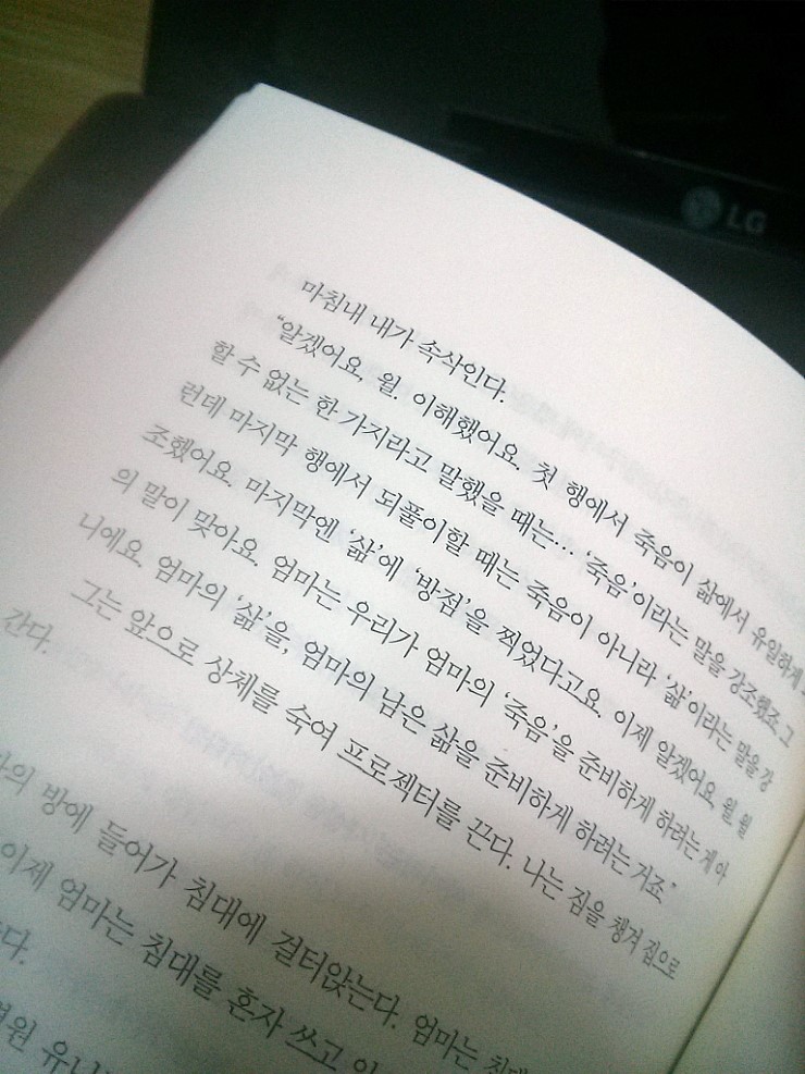 -  278p  어머니가 죽음을 앞둔 것을 안 주인공의 대사.