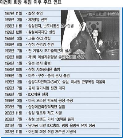 이병철 삼성그룹 창업주는 그야말로 무()에서 시작하여 그룹을 일궈낸 입지전적의 인물이다. 그런 만큼 그의 업적이 삼성의 모든 것이라고 평가되는 경우가 많다. 하지만 이건희 회장은 삼성 그룹을 이어 받아 현재 세계적인 기업으로 키워내어 그 경영 능력을 인정받았다.