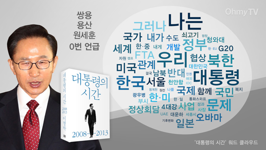 오마이뉴스에서 <대통령의 시간>의 내용 중 언급된 단어의 횟수를 기준으로 분석한 자료에 따르면
