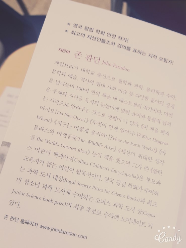 이 책은 케임브리지대학을 졸업한 존 판던John Farndon이 자신의 지식을 바탕으로