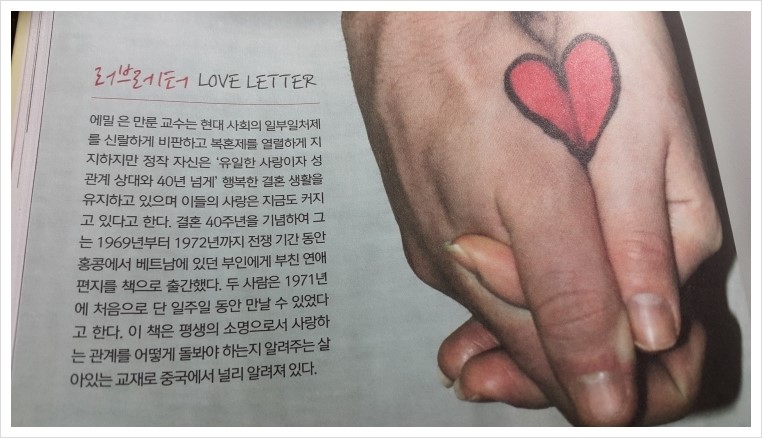 그럼에도 불구하고 전 세계 사람들의 사랑에 관한 생각과 가치관 등을 읽을 수 있어서 독특한 시각을 갖게 해주는 책이다.