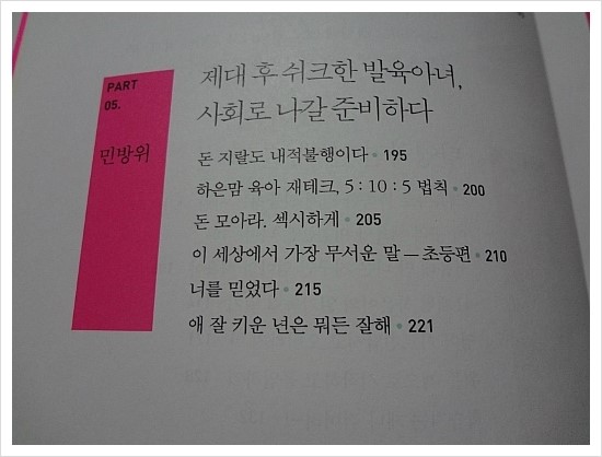 핫핑크가 메인이라 육아서 같지 않게 감각적이에요. 표지만 보면