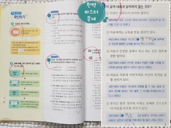 문제만 딱 보면 어려워 보이지만 앞의 내용들을 충실히 학습하며 따라온다면 어렵지 않게 문제풀이 할 수 있습니다. 아이들 자신감 쑥쑥 올라갑니다. 어려웠던 지문들에 대한 문제들이 술술풀이는 경험을 할 수 있습니다.