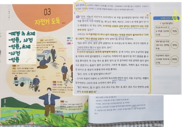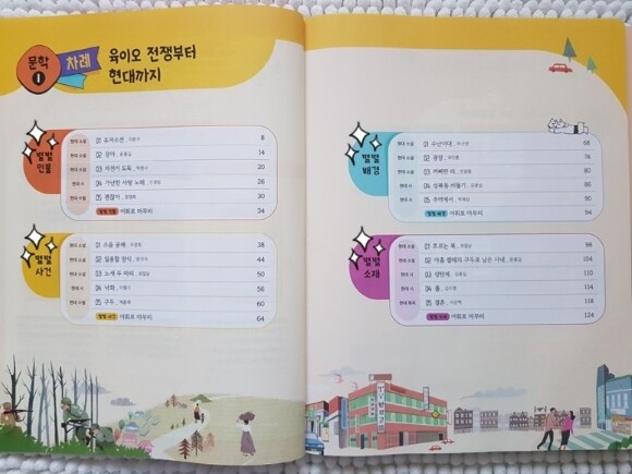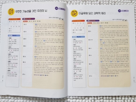 중학 비문학교재 차례를 보면 대부분 인문사회가 먼저 등장하고 과학기술 그리고 예술 순서로 차례가 이루어져 있지요. 그런데 아이들은 과학을 가장 쉬워하더라구요. (이건 남자아이들이라서 그런걸지도 모르겠지만요.. ^^) 그래서 살짝 아쉬웠는데, 초등수능독해 같은 경우는 과학-사회-기술-인문-예술 순서대로 구성되어 있음을 차례를 통해 확인 할 수 있습니다.