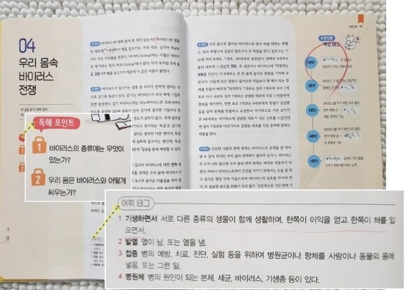 지문을 읽으면서 모르는 어휘 때문에 문장이 이해가지 않는 경우가 아니라면 우선 읽어 보는것을 추천합니다. 그리고 아리송했던 어휘들 몰랐던 어휘들을 어휘태그를 통해 확인 해 볼 수 있습니다.또한 과학용어들이 등장하는데 잘 모르는 용어들이 있을 수 있습니다. 그때도 어휘태그를 활용할 수 있지요.