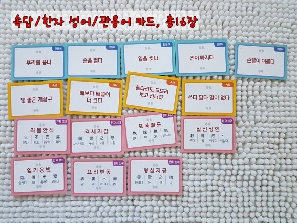 관용어 카드가 있다면 그 카드도 가져와서 확인해보고 뒷면의 뜻까지 정확히 확인해 봅니다.