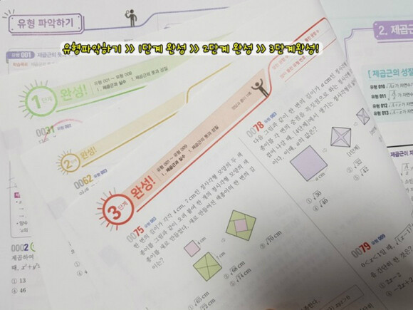 3단계 완성은 유형교재의 가장 어려운 부분답게 문제들이 나옵니다. 3단계 완성이 되면 심화교재로 넘어 갈수 있는 수준의 응용문제들입니다.