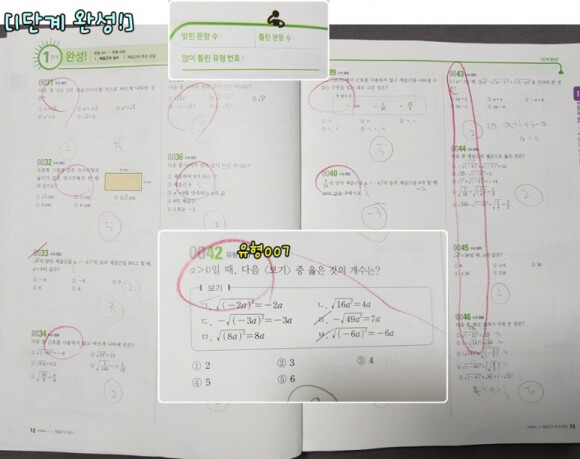 문제들을 보면 문제 옆에 유형 번호가 적혀있습니다. 유형번호를 많이 틀린 유형번호에 적어놓고 약한 유형 부분을 좀더 집중적으로 연습할 수 있을것 같네요.