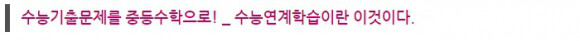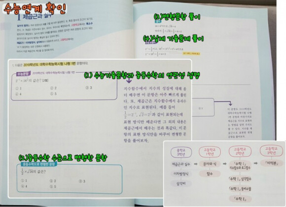 수능연계라고 하지만 사실 중학수학을 풀면서 수능연계라는 말이 안 와닿는게 사실이예요. 특히 수능기출문제 제공해주고, 이것이 바로 연계되어 있다라고만 해 놓으면??