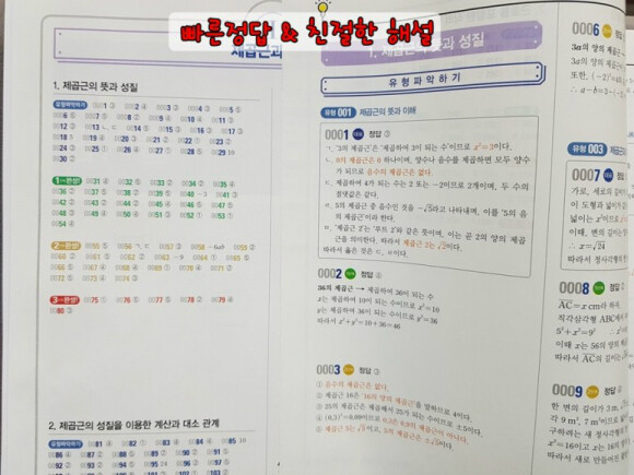 이 교재를 보면서 생각한것은 정말 정성스러운 중등수학문제집 이구나 생각했어요. 하나하나 학습자의 입장을 고려하고 배려해서 만들었다는게 느껴졌어요.