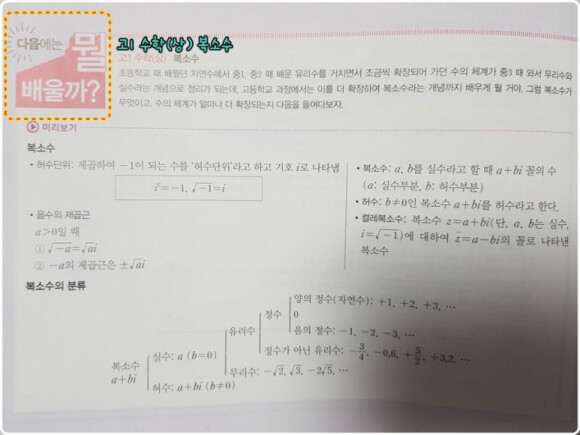 중3 제곱근의 뜻과 성질을 배우고 나면 고등 과정에서는 어떻게 연계가 될까 궁금할수도 있고, 이 부분을 통해 호기심을 갖게 될수도 있는 [다음에는 뭘 배울까?]코너가 있습니다.
