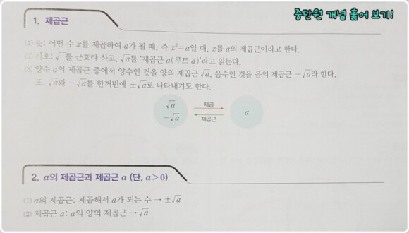 제곱근의 성질은 고1수학(상) 복소수와 연계되지요.무리수와 실수가 끝인줄 알았는데 복소수로 진행됩니다. 미리보기로 살짝 맛보기를 해보는것도 좋은것 같아요.