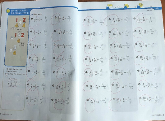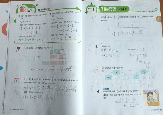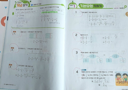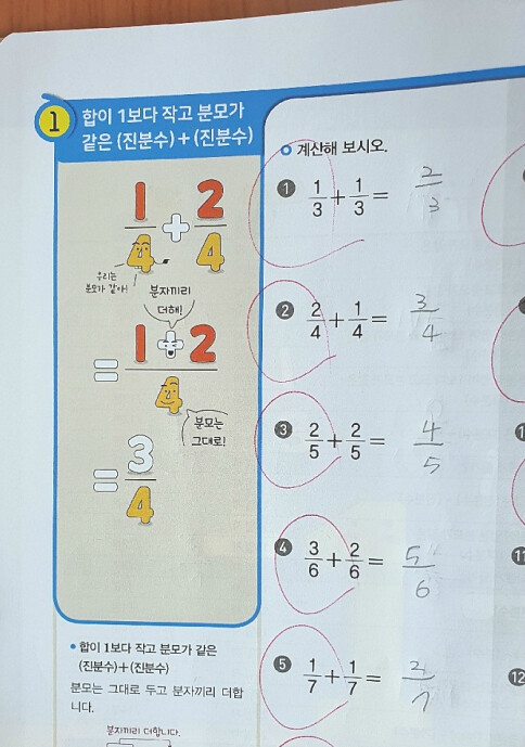 큰 어려움없이 분수의 덧셈과 뺄셈을 공부했답니다.