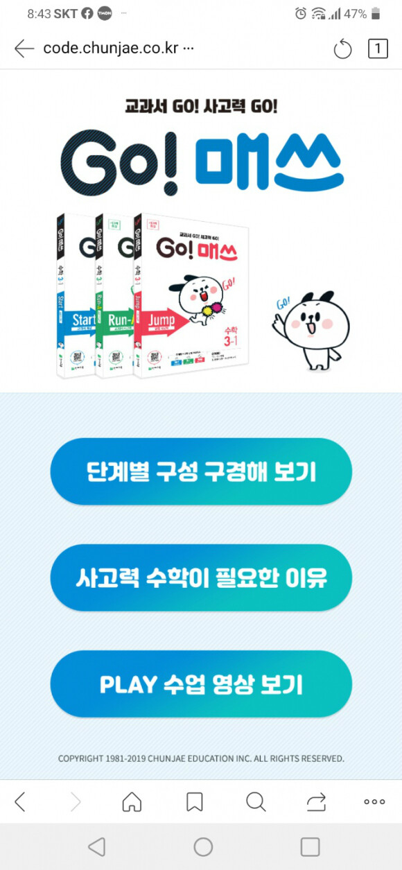 고매쓰 시리즈는 start - run A,B,C - jump 5단계로 이루어져 있어요.