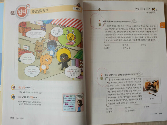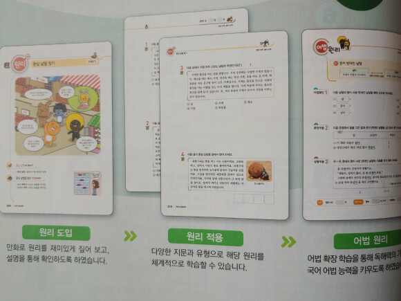 다른 교재에서는 아이들의 흥미를 끌기 위해 만화라든지,