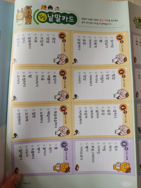 뒷 부분에는 하루하루 배운 낱말을 낱말카드로 잘라 만들어