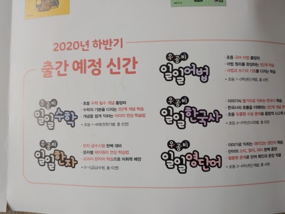 앞으로 수학, 어법, 한국사, 한자, 영단어까지 하반기 출간 예정이에요.