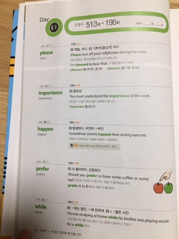 또한 옆에 뜻과 예문, 그림까지 완벽하게 되어 있어