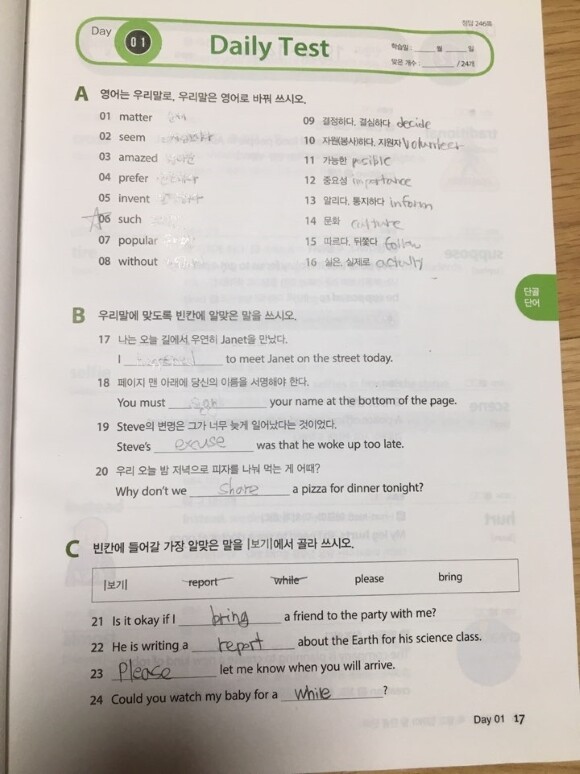 얼마나 다행인지 몰라요. 방학동안 2학년 필수 단어는 모두 다 잡고 갔으면 좋겠네요.