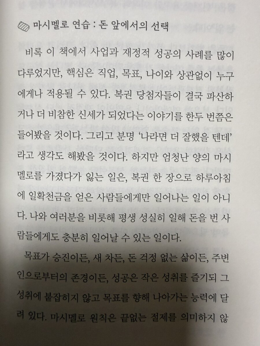 대학 신입생 시절, 나는 《마시멜로 이야기》를 손에 들고 꽤 진지한 얼굴을 했던 것 같다. 당시 그 얇은 책은 자기계발서 코너에서 꽤 눈에 띄는 자리를 차지하고 있었고, 표지의 통통한 마시멜로 그림은 마치 '이것만 참으면 성공한다'는 약속처럼 보였다. 읽고 나서 잠시 흥분했던 기억이 있다. 지금 눈앞의 욕구를 참을 수 있는 사람이 더 나은 미래를 얻는다는 이야기. 그것은 단순하고, 명쾌하고, 무엇보다 내가 노력만 하면 될 것 같은 기분을 주었다. 현재 유행하고 있는 뇌과학의 언어로 '왜 어떤 사람은 기다릴 수 있고 어떤 사람은 그렇지 못한가'를 설명해 주었던 책이었다.