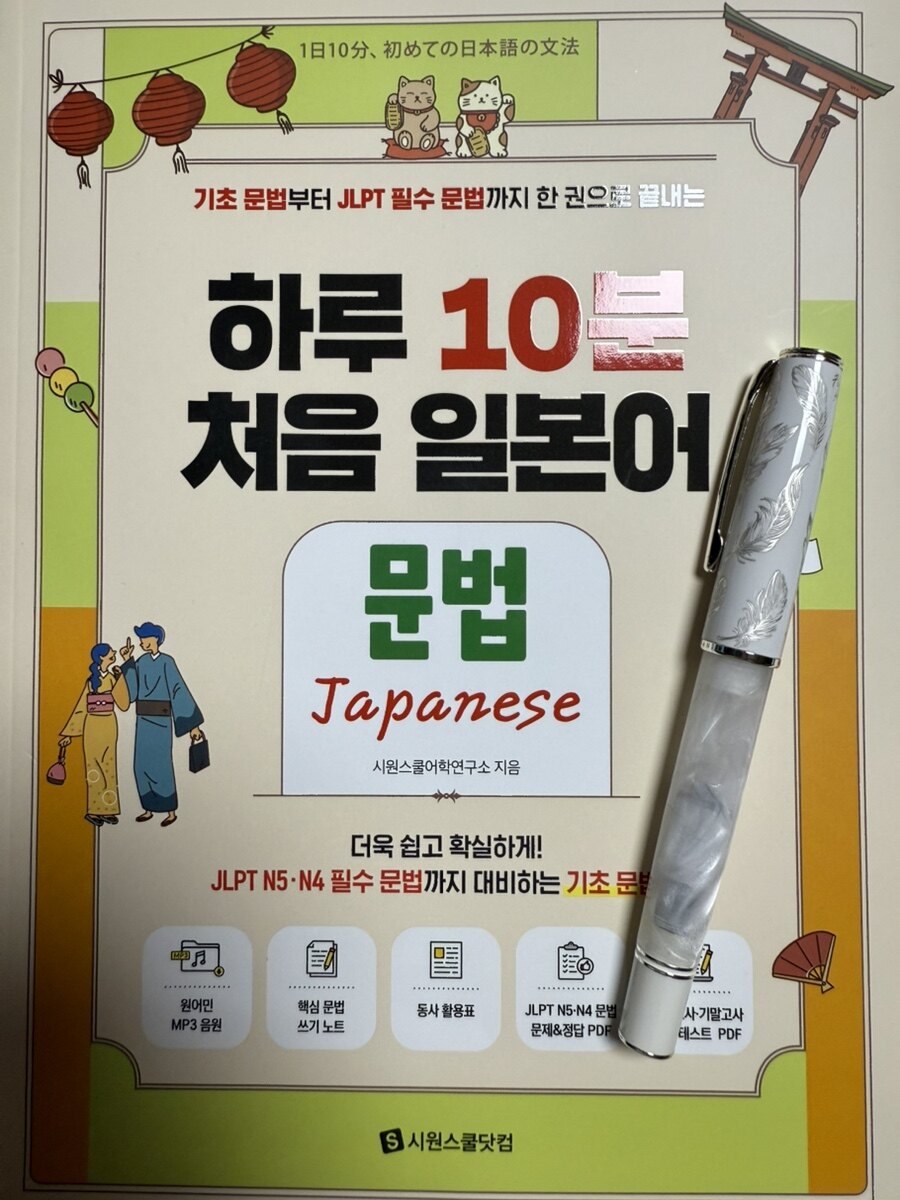 하루 10분 처음 일본어 문법 - 원어민 MP3 음원 + 핵심 문법 쓰기 노트 + 동사 활용표 + JLPT N5·N4 문법 문제 & 정답 PDF + 중간고사·기말고사 복습 테스트 PDF