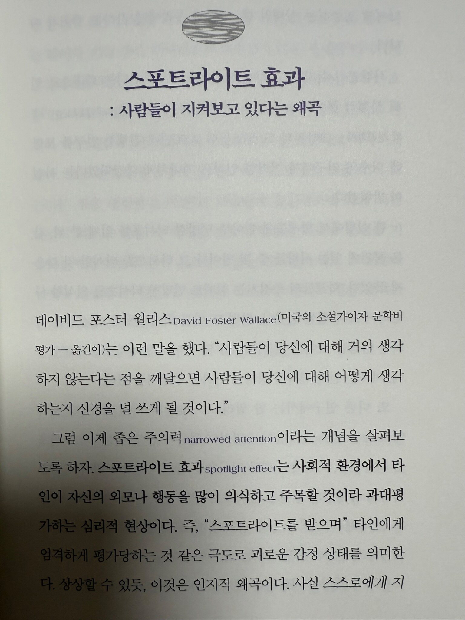 어린 시절부터 나는 '생각이 많은 아이'였다. 친구들과 놀 때도 '내가 재미없어 보이지는 않을까', '혹시 나만 빼고 다른 놀이를 하면 어떡하지'라는 걱정이 앞섰다. 성인이 된 지금도 크게 다르지 않다. 회사에서 프레젠테이션을 하기 전에는 며칠 동안 온갖 시나리오를 머릿속으로 시뮬레이션한다. "만약 질문을 받으면 어떻게 답해야 할까? 혹시 준비한 자료에 오류가 있으면? 목소리가 떨리면?" 이런 생각들이 쌓이고 쌓여 결국 실제 상황에서는 경직된 모습으로 나타난다. 완벽하게 준비했다고 생각했는데, 정작 중요한 순간에는 머릿속이 새하얗게 변하곤 한다. 트렌턴이 말하는 '스포트라이트 효과'를 읽으면서 뼈아픈 공감이 밀려왔다. 정말로 모든 사람이 나를 주시하고 있다고 느꼈던 순간들이 떠올랐다. 지하철에서 전화를 받을 때, 카페에서 혼자 앉아 있을 때, 심지어 마트에서 장을 볼 때도. 마치 거대한 무대 위에 혼자 서 있는 것 같은 그 기분. 하지만 실제로는 아무도 나에게 그만큼의 관심을 기울이지 않았다는 것을, 이제야 알게 되었다.