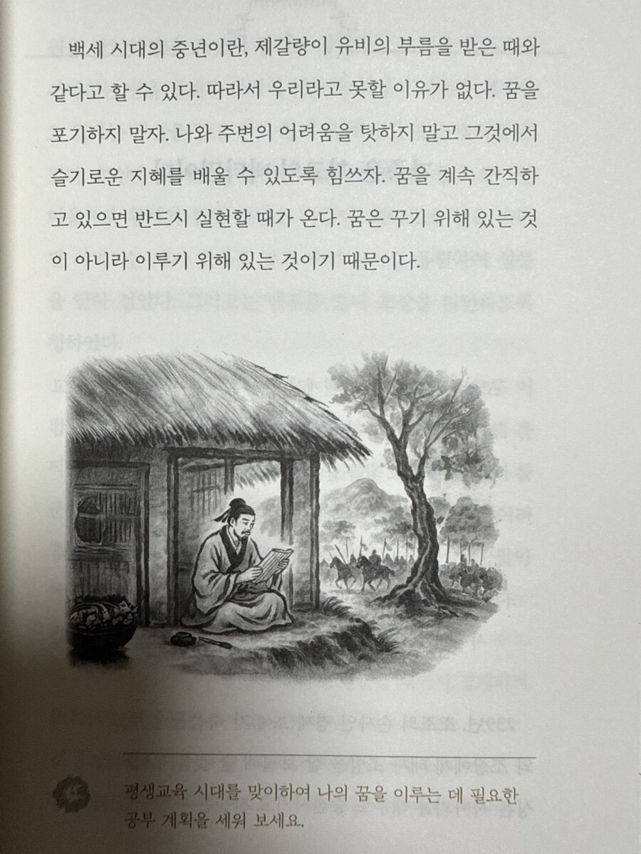 제갈량은 언제나 완벽한 존재로 그려진다. 지혜로우며 충성스럽고, 모든 계략이 적중하는 신묘한 군사. 하지만 인간 제갈량은 어떤 모습이었을까. 책을 읽으며 나는 제갈량의 또 다른 면을 발견했다. 그의 헌신은 때로는 독이 되기도 했다. 모든 것을 혼자 짊어지려 했고, 완벽을 추구하다 보니 부하들의 성장 기회를 제한하기도 했다. 이는 현대의 많은 리더들이 빠지는 함정이기도 하다. 나 역시 완벽주의적 성향이 있다. 일을 맡으면 끝까지 책임지려 하고, 남에게 맡기는 것을 어려워한다. 하지만 제갈량의 삶을 보며 깨달았다. 혼자 모든 것을 감당하려는 것은 용기가 아니라 오만일 수 있다는 것을. 철저한 준비의 중요성은 분명 배워야 할 덕목이다. 하지만 때로는 불완전함을 받아들이는 용기도 필요하다. 제갈량의 마지막이 그토록 쓸쓸했던 이유도 혼자 모든 것을 짊어지려 했기 때문이 아닐까.