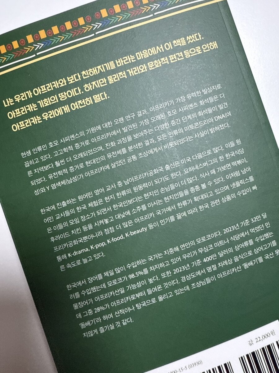아프리카. 이 단어를 들으면 무엇이 떠오르는가? 아마도 대부분의 사람들은 사바나의 야생동물, 가난과 질병, 그리고 검은 피부의 사람들을 떠올릴 것이다. 나 역시 그랬다. 하지만 최근 접한 자료를 통해 아프리카에 대한 나의 인식이 얼마나 피상적이고 편견에 가득 차 있었는지 깨닫게 되었다. 14억 인구가 살아가는 거대한 대륙 아프리카는 우리가 생각하는 것보다 훨씬 복잡하고 다양하며, 놀랍도록 현대적인 면모를 지니고 있었다. 김명희님의 <물어물어 찾아낸 나의 친구 아프리카>를 읽으며 아프리카의 새로운 면을 찾아 볼 수 있었다.