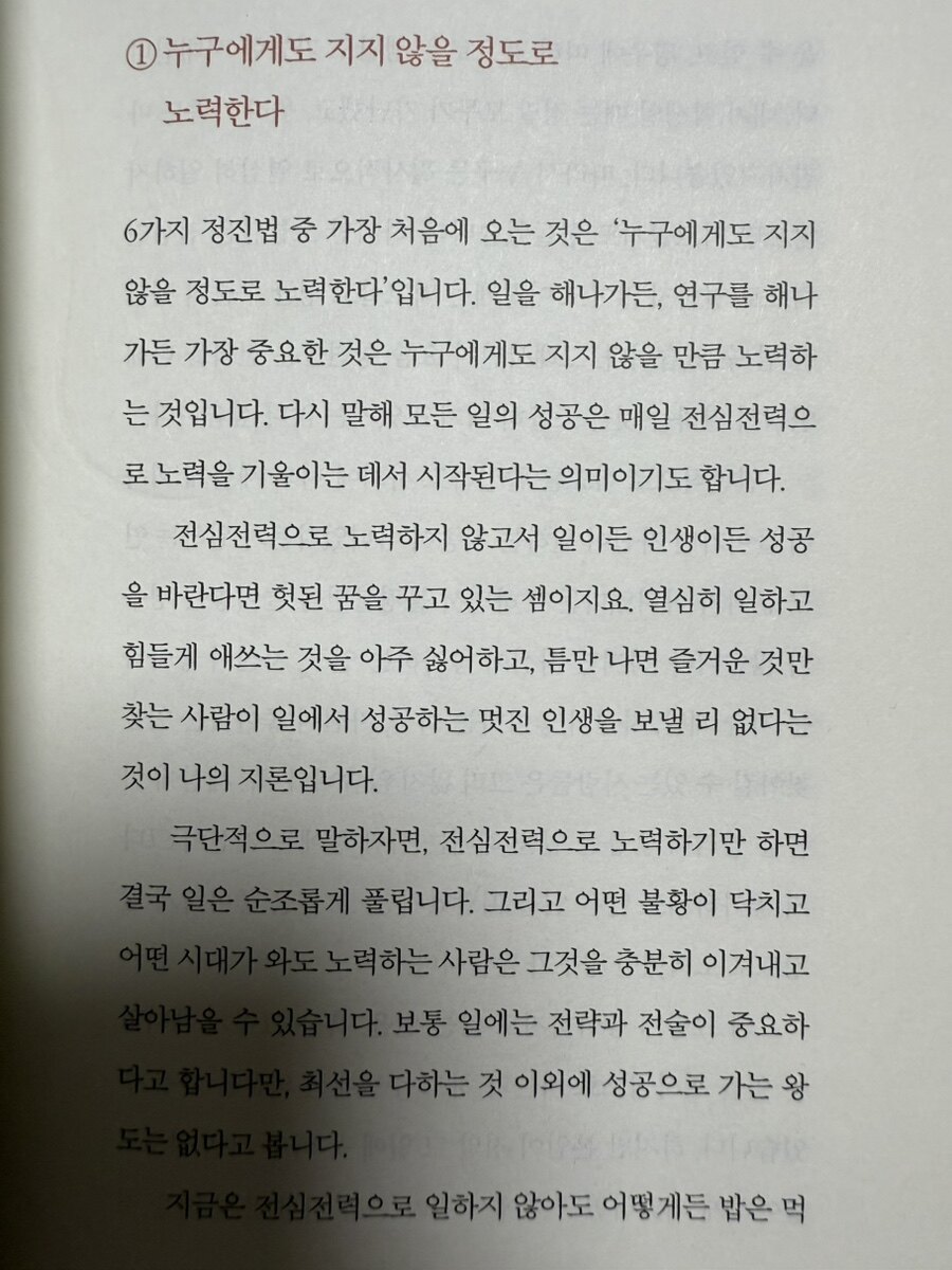 이나모리 가즈오가 제시하는 또 다른 핵심 개념은 '진정한 노력'이다. 그는 주관적 노력과 객관적 노력을 구분하며, 진정한 노력은 타인이 봐도 인정할 수 있을 정도의 객관적 노력이어야 한다고 강조한다. 이는 현대 사회에서 흔히 볼 수 있는 '노력하는 척'이나 '바쁜 척'과는 완전히 다른 개념이다. 진정한 노력은 결과에 대한 집착이 아니라 과정에 대한 충실함을 의미한다. 남들이 보지 않는 곳에서도, 인정받지 못하는 일에서도 최선을 다하는 것이야말로 진정한 노력이다. 이러한 노력은 당장의 성과로 이어지지 않을 수도 있지만, 장기적으로는 반드시 결실을 맺는다. 현대인들은 종종 '스마트하게' 일하는 것을 추구하며, 노력을 비효율적인 것으로 여기는 경우가 많다. 하지만 이나모리의 경험에 따르면, 진정한 노력 없이는 어떤 기술이나 전략도 큰 성과를 가져다주지 못한다. 노력은 단순히 시간을 투자하는 것이 아니라, 자신의 모든 에너지와 집중력을 하나의 목표에 집중시키는 것이다. 이나모리가즈오의 인생 경영법에서 빼놓을 수 없는 것은 인간관계에 대한 그의 철학이다. 그는 개인의 성공이 아니라 공동의 성장을 추구했으며, 이는 그의 경영 철학 전반에 스며들어 있다. 진정한 리더는 자신만의 성공을 추구하는 것이 아니라, 함께 일하는 모든 사람들이 성장할 수 있도록 돕는 사람이다. 이나모리 가즈오의 철학이 현재에도 유효한 이유는 그의 가르침이 시대를 초월하는 보편적 가치에 기반하고 있기 때문이다.