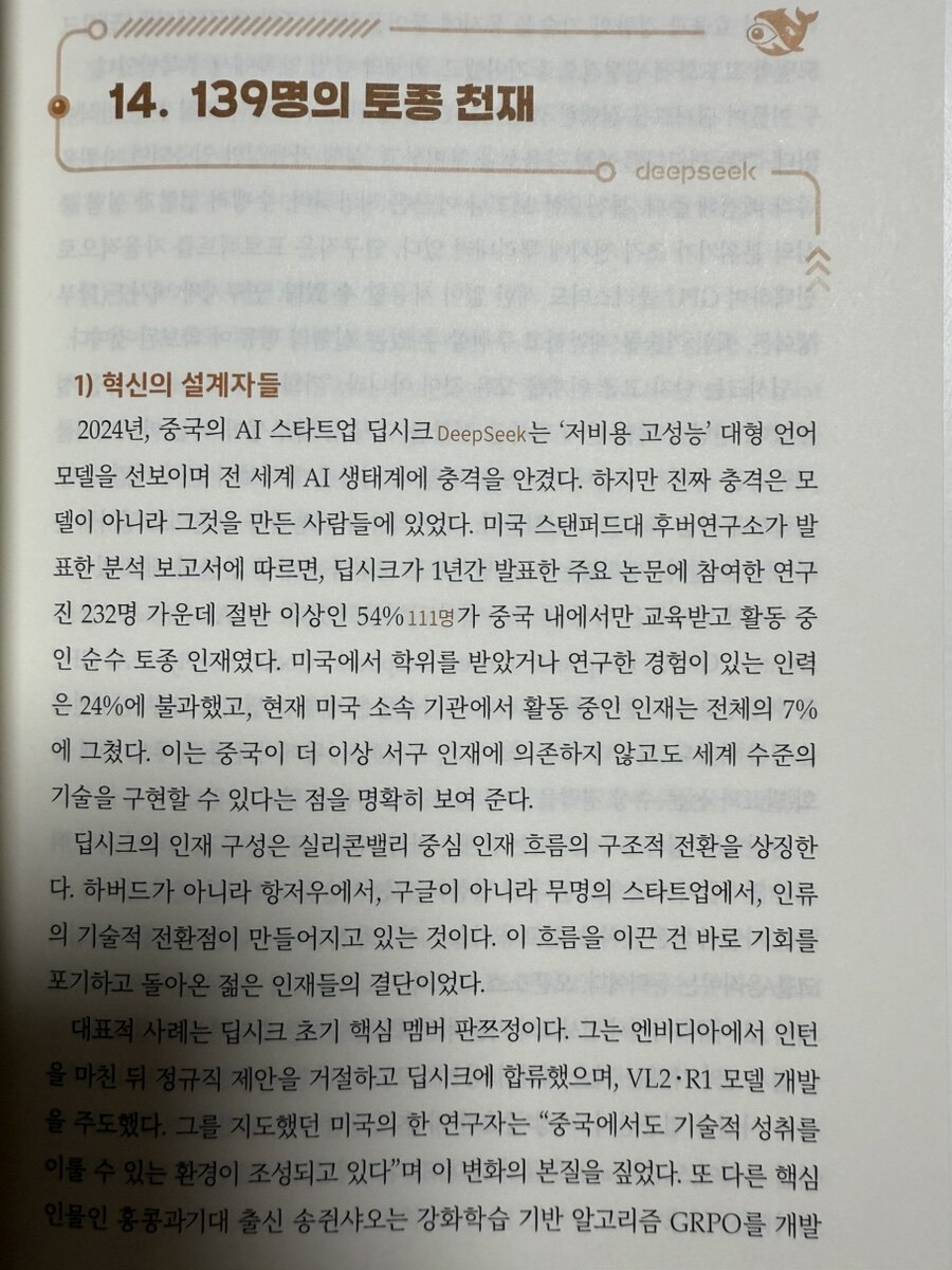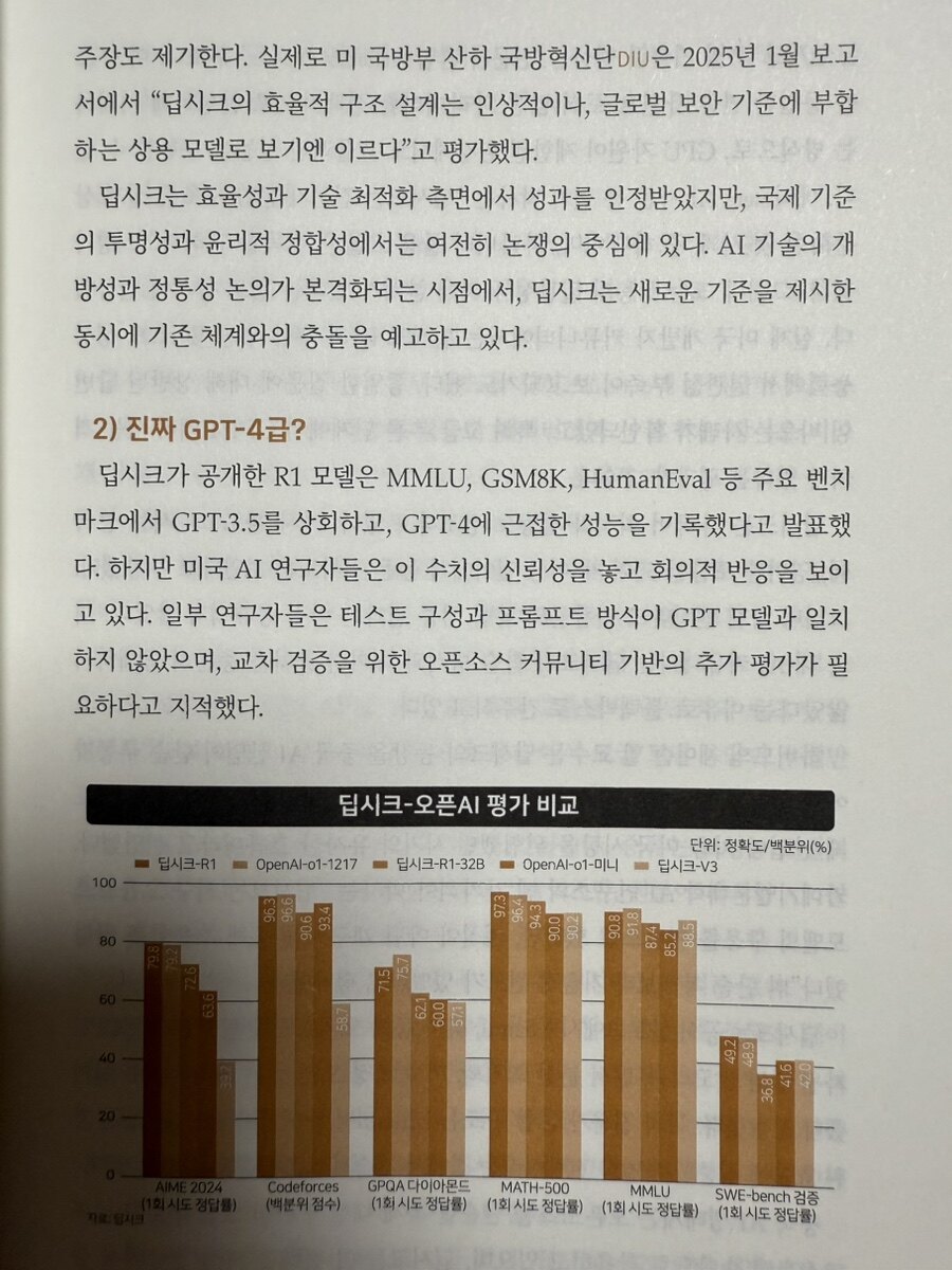 2025년 1월, 중국의 AI 스타트업 딥시크(DeepSeek)가 발표한 R1 모델은 글로벌 기술 생태계에 지각변동을 일으켰다. 이사건은 AI 개발의 근본적 방식론에 대한 도전장이었다. 기존의 "더 많은 자본, 더 강력한 하드웨어"라는 브루트 포스(brute force) 접근법이 아닌, 효율적 아키텍처와 최적화를 통해 동등한 성능을 달성할 수 있다는 가능성을 현실로 만들어낸 것이다. 이 사건이 갖는 의미는 기술사적 관점에서 볼 때 CPU에서 GPU로, 다시 GPU에서 효율적 설계로의 전환점과 유사하다. 하드웨어 성능의 절대적 우위가 아닌, 소프트웨어 최적화와 알고리즘 혁신이 경쟁력의 핵심이 되는 새로운 시대의 개막을 알리는 신호탄이었다. 이번에 현재 진행되고 있는 <딥시크 AI 전쟁>에 대해 상세히 읽는 기회가 있었다.
