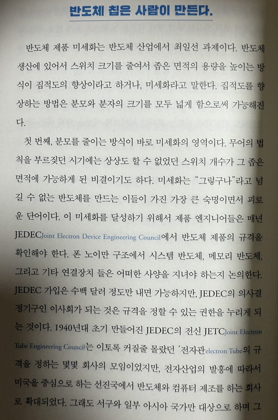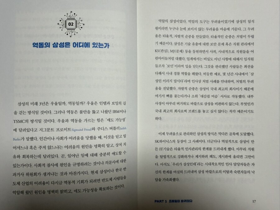 2024년은 인공지능(Al) 칩과 전기자동차(EV) 배터리 산업이 중요한 화두로 떠오르는 해가 될 것으로 보인다. 이러한 두 산업은 서로 긴밀하게 연결되어 있으며, 각각의 발전은 다른 산업에 미치는 영향을 통해 경제 전반에 큰 변 화를 가져올 것이다. 먼저 인공지능 기술의 발전은 다양한 산업에 혁신을 가져오고 있다. 특히, AI 칩은 이러한 기술의 핵심 요소로 자리잡고 있으며, 고성능 반도체의 수요 증가와 함께 발전하고 있다. 4차 산업 혁명 시대의 필수 반도체인 AI 칩은 데이터 처리 속도와 효율성을 극대화하기 위해 설계된 반도체로, 머신 러닝, 자연어 처리, 이미지 인식 등 다양한 AI 응용 프로그램에서 필수적으로 사용된다. 특히 SK하이닉스와 같은 반도체 기업들은 DDR5, HBM(High Bandwidth Memory) 등 고부가가치 제품의 기술 경쟁력을 강화하고 있다. 이러한 기술들은 AI 집에 필 요한 메모리 성능을 지원하며, AI 기술의 발전에 중요한 기여를 하고 있다. AI 칩의 수요가 증가함에 따라 반도체 산업의 성장 가능성도 더욱 커질 것이다. 25년 현재 AI 반도체를 필두로 하이닉스가 삼성전자를 추월하는 현상이 나타나고 있다. 또한 AI 반도체로의 전환에 뒤떨어진 인텔은 과거의 영광을 뒤로하고 위기에 쳐해있다. 이렇게 급격히 변화하는 반도체 세계에서 한국 반도체의 미래는 어떻할지 분석하는 신간을 읽어 볼 기회가 있었다. 반준영님의 <한국 반도체의 미래 3년>이었다.