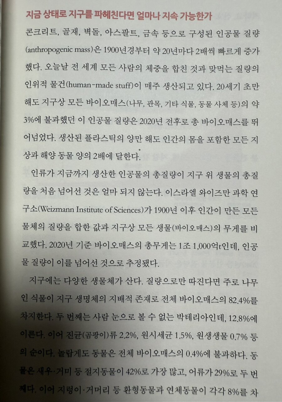 현대 자본주의에서 금융은 더 이상 실물경제를 지원하는 수단이 아니다. 그 자체가 목적이 되어 끝없이 증식하는 괴물로 변했다. 한국의 GDP가 1990년 200조 원에서 2021년 2,072조 원으로 10배 증가한 동안, 금융시장 규모는 158조 원에서 5,662조 원으로 36배나 급증했다. 2004년 서울에서 30평대 아파트 한 채를 마련하려면 노동자 월급 18년 치가 필요했지만, 2022년에는 36년 치로 늘어났다. 이러한 변화는 금융시장 확대에 따른 자산 거품과 직접적으로 연관되어 있다. 과거 18-19세기 유럽에서 자본 축적이 예술과 문화의 후원으로 이어져 사회적 잉여를 창출했던 것과 달리, 현대의 자본가들은 자신의 이익 증대에만 몰두하고 있다. 예술작품조차 대물림의 수단으로 수집할 뿐, 진정한 문화적 가치 창조에는 관심이 없다. 성장주의가 낳은 가장 심각한 결과 중 하나는 환경 파괴다. 기후변화에 대한 개인적 대응, 즉 재활용품 사용이나 금속 빨대 사용 등이 마치 기후 위기의 해결책인 양 포장되고 있지만, 이는 근본적인 해결책이 될 수 없다. 양적 성장을 지향하는 자본주의 시스템에서 발생한 문제를 개인의 노력으로 해결하려는 것은 허황된 믿음일 뿐이다.