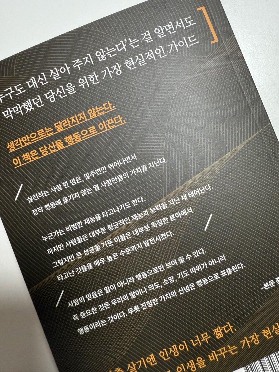 인생은 나만의 것이다. 다른 사람과 비교할 필요도 없고, 남의 기준에 맞춰 살 필요도 없다. 중요한 것은 자신만의 기준을 세우고, 그 기준에 따라 살아가는 것이다. 자기 책임을 진다는 것은 때로는 외롭고 힘든 길이다. 다른 사람들이 이해해주지 않을 수도 있고, 혼자서 감당해야 할 것들이 많을 수도 있다. 하지만 그 대신 얻는 것은 진정한 자유와 성취감이다. 누구도 우리의 인생을 대신 살아주지 않는다. 그렇기 때문에 나만이 내 인생을 책임질 수 있다. 이것이 부담이 아니라 기회라는 것을 깨달을 때, 진정한 변화가 시작될 것이다.