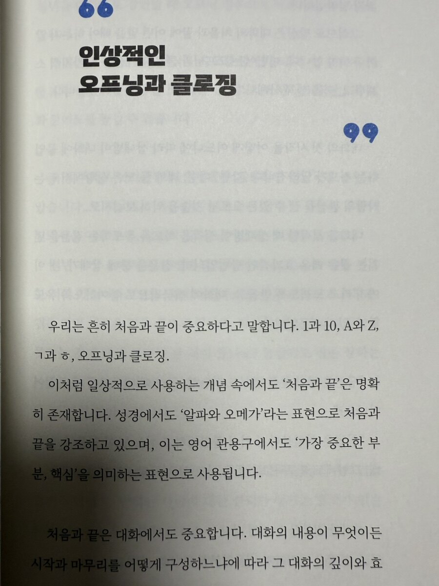 저자는 여러가지 실질적인 사례를 통해서 효과적인 대화를 위한 기법들을 상세히 이야기 해 준다. 대화를 통해 우리는 새로운 관점을 접하고, 자신의 생각을 정리하며, 타인과 깊은 연결을 형성할 수 있을 것이다. 진정한 대화의 힘은 정보만을 전전 달하는 것이 아니라, 서로의 삶에 의미 있는 영향을 미치는 데 있다. 대화 기술의 향상은 평생에 걸친 여정이다. 완벽함을 추구하기보다는 지속적인 개선과 학습에 초점을 맞추는 것이 중요하다. 작은 대화의 기술이라도 실천에 옮긴다면, 그것이 더 나은 관계와 기회로 이어지는 첫 걸음이 될 것이다. 한 마디 말로 신뢰를 얻고 기회를 만드는 법을 배우는 과정은 자신과 타인에 대한 이해를 깊게 하는 여정일 것이다. 모든 대화에 진정성과 존중, 그리고 배움의 자세로 임하는 것이 중요할 것 같다. 한 마디의 말이 한 사람의 인생을, 나아가 세상을 변화시킬 수 있음을 새삼 다시한번 느껴본다.