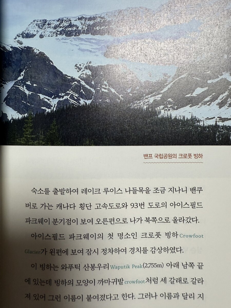 "캐나다 여행을 오기 전 한 여행잡지에서 페이토호수의 사진을 보고 '호수의 색깔이 어찌 이렇게 곱고 예쁜가?' 하며 감탄했었는데 막상 그 호수를 바라보고 있자니 비현실적인 환상의 세계에 들어와 있는 것 같았다." 여행자의 책을 읽으며, 나는 깊은 숨을 들이쉬었다. 사진으로만 보아왔던 그 짙은 에메랄드빛 호수를 상상하며 내 마음은 이미 로키산맥의 해발 1,860m 고지에 와 있었다. 빙하수에 포함된 미세한 암석 입자가 만들어내는 신비로운 색채의 마법... 그것은 어떤 카메라도 완벽히 담아낼 수 없는, 오직 두 눈으로 직접 보아야만 할 경험일 테다. 나는 종종 상상한다. 이른 아침, 안개가 살짝 피어오르는 페이토 호수 앞에 서서 첫 햇살이 수면 위에 반사되는 순간을 기다리는 나의 모습을. 그 순간만을 위해 몇 시간이고 기다릴 수 있을 것 같다. 자연은 우리에게 서두르지 말라고, 그저 기다림의 미학을 배우라고 가르치니까.