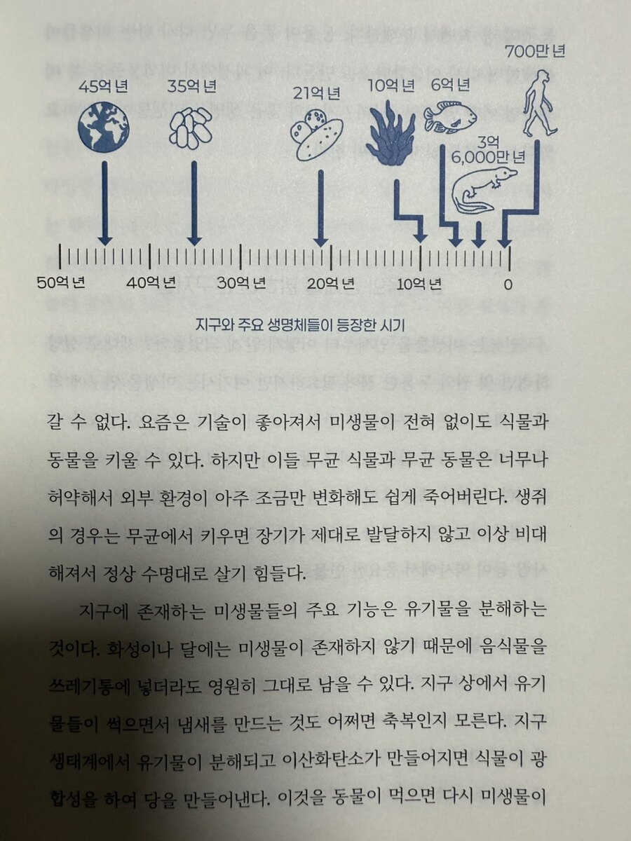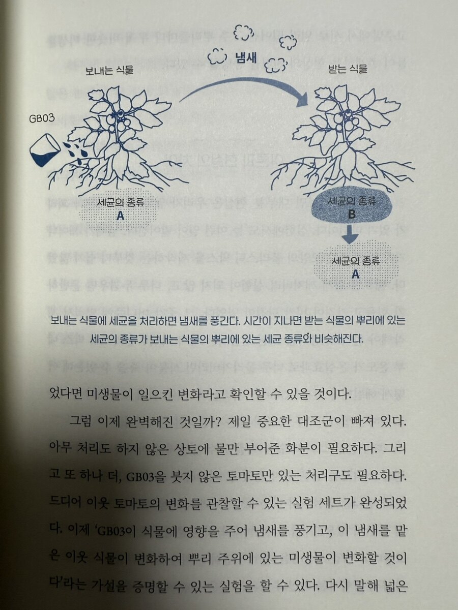 지구의 역사에서 인간은 불과 잠깐 등장한 손님에 불과하다. 그러나 미생물은 지구가 생명을 품기 시작한 순간부터 함께해온 오래된 주인이다. 우리가 발을 딛는 모든 곳, 숨을 쉬는 모든 공간, 심지어 우리 몸 안에도 셀 수 없이 많은 미생물이 살아가고 있다. 눈에 보이지 않는 이 작은 생명체들이 없다면 지구의 생태계는 단 하루도 유지될 수 없을 것이다. 미생물의 가장 기본적인 역할은 유기물을 분해하는 것이다. 죽은 생물을 처리하는 청소부 역할이다. 그들의 분해 작업을 통해 만들어진 이산화탄소는 식물의 광합성을 가능하게 하고, 식물이 만든 당은 다시 동물의 에너지원이 된다. 이런 순환고리 속에서 미생물은 필수적인 연결고리다. 화성이나 달에 미생물이 없다면 음식물 쓰레기는 영원히 그대로 남을 것이다. 지구에서 유기물이 썩으면서 냄새를 풍기는 것도 미생물 덕분이다. 유기물이 분해되고 이산화탄소가 만들어지면 식물이 광합성을 통해 당을 생성한다. 동물이 이를 섭취하면 장내 미생물이 다시 분해하고, 동물의 배설물 역시 미생물에 의해 분해되어 다시 이산화탄소가 된다. 이 과정에서 미생물을 제거한다면 지구의 생명체 대부분은 생존할 수 없을 것이다. 이 책은 미생물, 특히 세균의 놀라운 세계와 그 중요성을 탐구하는 과학 에세이다. 저자는 토마토의 풋마름병 연구부터 시작해 식물과 미생물의 복잡한 관계, 토양 미생물이 식물에게 '기억'을 전달하는 방식, 식물이 소리에 반응하는 현상, 미생물이 곤충의 변태에 미치는 영향, 장내 미생물과 정신 건강의 연관성, 항생제 개발의 도전과제까지 다양한 주제를 다룬다. 또한 플라스틱을 분해하는 나방 애벌레의 발견, 물고기를 이용한 암 연구, 마스크 여드름과 미생물의 관계 등 일상과 연결된 흥미로운 연구 사례들을 통해 미생물이 지구 생태계의 균형을 유지하는 핵심적 역할을 하며, 인간을 포함한 모든 생명체의 건강과 생존에 얼마나 중요한지를 보여준다. 흥미로운 주제들이 많아 부담스럽제 않게 읽을 수 있다.